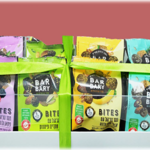 14 שקיות כדורוני תמרים ואגוזים במשקל 55 גרם (21 כדורונים בכל שקית) ממגוון הטעמים הכייפים של ברבריא.